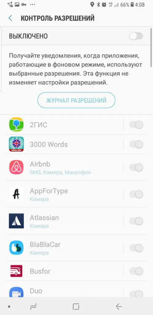 Приложения — контроль разрешений — включить
