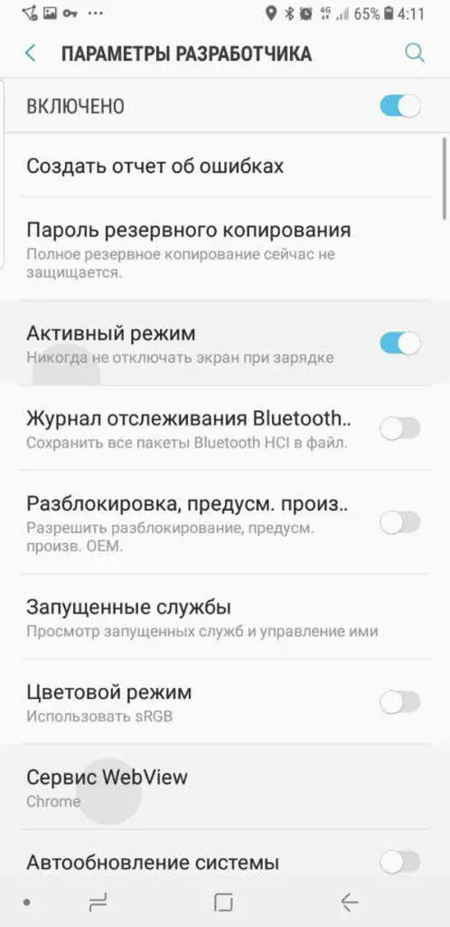 Выбрать сведения о ПО и 8 раз нажать на пункт номер сборки, после этого в главном меню появится еще один - «Параметры разработчика»