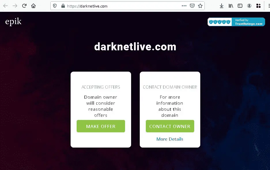 Мошенники подняли свои сайты на полученных доменах. Разместили на них поддельные ссылки. А под конец даже попытались организовать аукцион по продаже домена darknetlive прямо на его главной странице.
