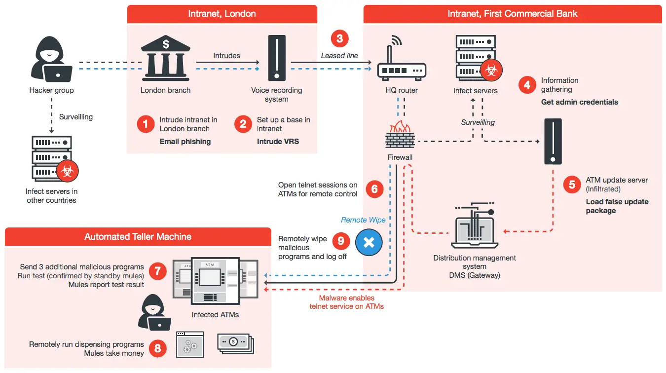 Сама схема атаки было довольно сложна - она началась в лондонском филиале банка, где хакеры использовали систему записи голоса для кражи учетных данных администратора домена и получения доступа к тайваньскому филиалу.