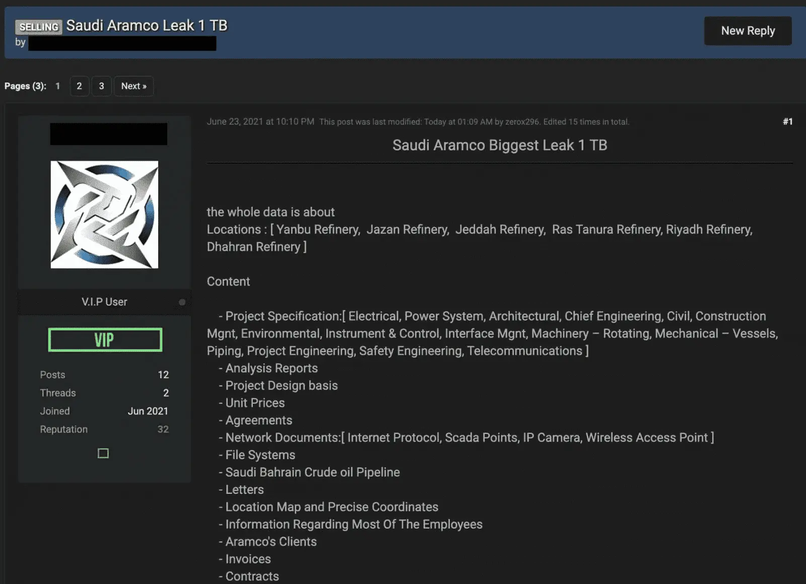 Saudi Aramco – мировой лидер по количеству добываемой нефти и нефтяным запасам. В июле хакеры из группировки ZeroX выложили на даркнет-форуме предложение купить 1 терабайт конфиденциальных данных компании.