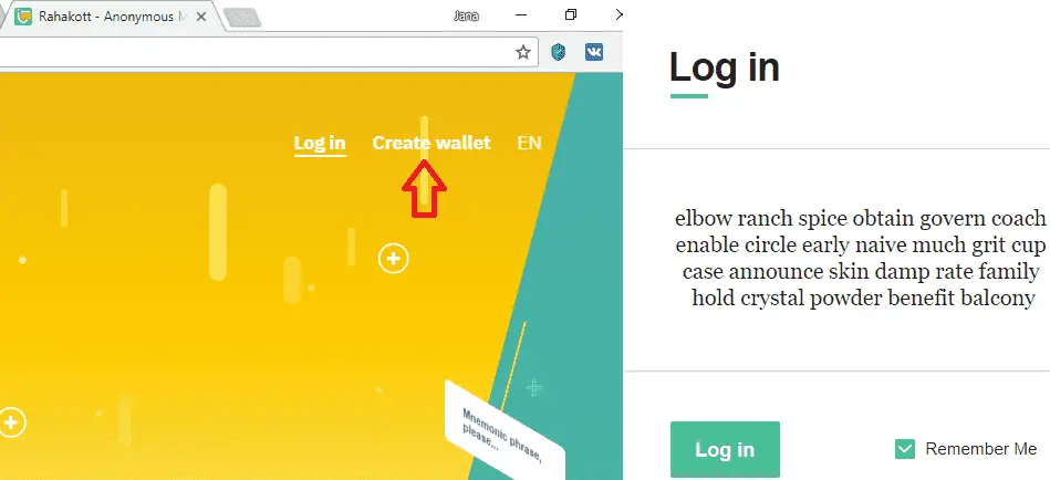 Rahakott выделяется среди них с первого клика — регистрация занимает ~15 секунд. Для регистрации нужно ввести только капчу и выбрать язык (русский есть). Никаких телефонов или почты. Сайт сгенерирует набор слов, их нужно либо куда-нибудь сохранить и копипастить / перепечатывать при входе, либо просто поставить галочку напротив "Запомнить меня".