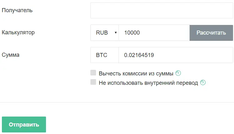 На другие адреса пользователей Rahakott средства отправлять можно без записи в блокчейн — тогда не взимаются комиссии. Если необходимо записать перевод в блокчейн (для отчётности), нажимается галочка "Не использовать внутренний перевод", и тогда комиссия будет такой же, как при переводе на все остальные адреса; для BTC это 0.0005 Ƀ сервису и от 0.0001 Ƀ сети = 0.0006 Ƀ, т.е. ~275 рублей по курсу на 02.06.18