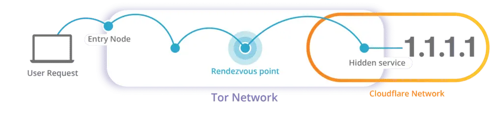 По сути это скрытый сервис Tor, который перенаправляет сообщения на порты в 1.1.1.1. Таким образом настоящий IP-адрес пользователя скрывается.