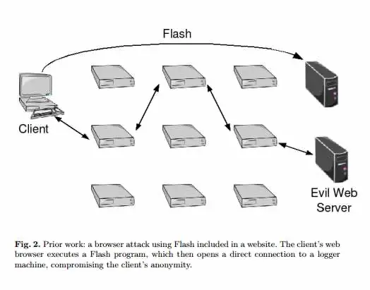 Кроме псевдоофициальных (ты ведь не принимаешь на веру все, что считается утечкой?) документов, комьюнити знает о других, более интересных и хитрых атаках на клиентскую сторону. Так, исследователями было установлено, что Flash создает выделенный канал коммуникации между атакующим и жертвой, что полностью дискредитирует последнюю. Однако разработчики Tor Browser оперативно отреагировали на данную проблему, исключив обработчики Flash-контента из своего детища.